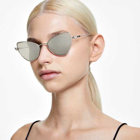 Diese vielseitige Sonnenbrille kann auf unterschiedliche Weise getragen werden – wählen Sie einen extravaganten oder subtilen Style. Inspiriert von unserer Mesmera Schmucklinie besticht das Design mit einem Rahmen im Gun Metal-Farbton mit verspiegelten Platingläsern und Kristallen auf den Bügeln und Enden. Der Look kann mit einem kristallisierten Clip-on-Rahmen aufgewertet werden. Dieser verziert die Brillengläser rundum mit gewagten Elementen in verschiedenen Schliffen. Diese Sonnenbrille kann Ihren Look in wenigen Sekunden komplett verwandeln.