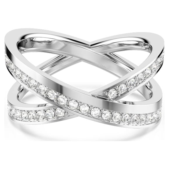 With two spirals of intersecting crystals, this Delta ring provides a double dose of Swarovski elegance. The rhodium plated design is masterfully crafted for maximum impact, with each band set alight by shimmering pavé. Wear it as one of your everyday favorites, or when pure sophistication is called for.