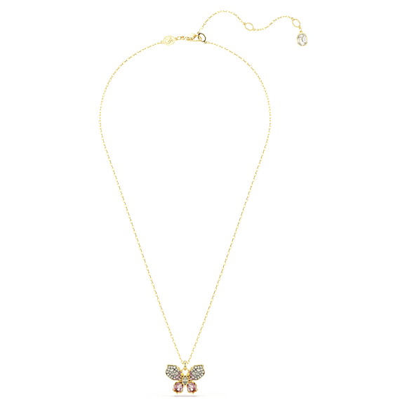 Απογειώστε το στυλ σας με αυτό το ντελικάτο μενταγιόν πεταλούδα. Το μαγευτικό σχέδιο είναι περασμένο σε αλυσίδα με επιμετάλλωση σε χρυσό τόνο και διαθέτει ένα κεντρικό μοτίβο διακοσμημένο με κρύσταλλα σε διάφορα σχήματα και χρώματα. Η εντυπωσιακή δημιουργία συμβολίζει τη μαγεία που κρύβεται στον πανέμορφο κήπο της Idyllia και συνιστά ένα κόσμημα γεμάτο νόημα, τόσο χαρούμενο όσο και πολυτελές.