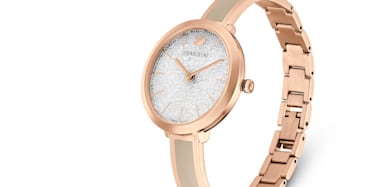Crystalline aura watch Swiss Made, Metal bracelet, Rose gold tone, Rose gold-tone finish