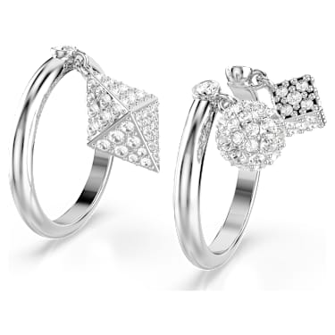 Dextera ring Set (2), Sphere and cube, White, Rhodium plated