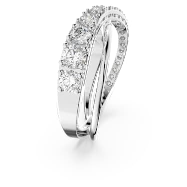 Timeless yet stylish, puristic yet brilliant. This ring by Swarovski displays an inspired take on the spiral trend. Two shimmering lines intertwine in elegant, gentle curves, one crested with marvelously glittering white stones that add sparkling radiance to the ring. Its simplistic design makes it perfect for everyday wear, complementing your style with a touch of brilliance.