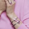 Remove jewelry before washing hands, swimming, and/or applying products (e.g. perfume, hairspray, soap, or lotion), as this could harm the metal and reduce the life of the plating, as well as cause discoloration and loss of crystal brilliance. Avoid hard contact (i.e. knocking against objects) that can scratch or chip the crystal.