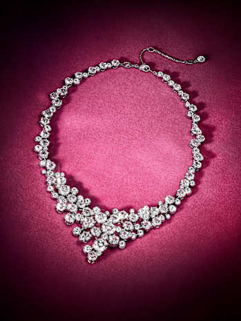 Take inspiration from Ariana Grande with joyful jewelry. Statement pieces styled in monochrome stacks are effortlessly extravagant, while mixed cuts of crystals