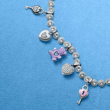 Idyllia charm Mixed cuts, Teddy, Purple, Rhodium plated