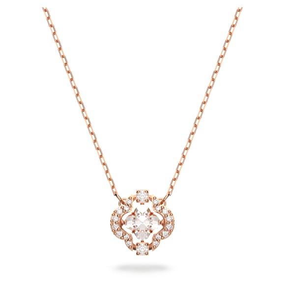 Keep luck on your side with this elegant necklace. It features a shining clear stone in the shape of a clover, which 'dances' inside its setting, finished with a rose gold-tone plated chain. Choose this piece to elevate your look and your luck.