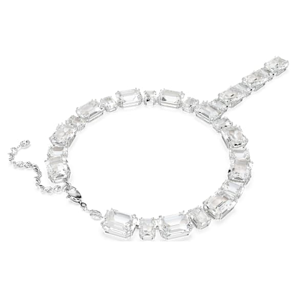 Diese T-förmige Halskette aus der Millenia Familie lässt staunen. Das rhodinierte Allaround-Design präsentiert klare Kristalle in verschiedenen Formen und Größen sowie eine lange, schwingende Kette vorne. Damit bringen Sie Licht und Freude in Ihren Style. Kombinieren Sie diese Halskette mit den dazu passenden Millenia Ohrringen und runden Sie Ihren Look perfekt ab.