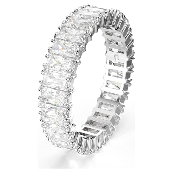 缺少耀眼的環戒,珠寶系列就不夠完整。這款銀色調飾面設計鑲嵌一整圈的法國麵包形切割 Swarovski 鋯石,每顆都鑲嵌在精緻的爪鑲鑲座上。無論單獨佩戴或與 Matrix 系列同樣耀眼的戒指疊戴,都是一款絕妙單品。
