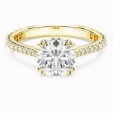 Proving there is power in simplicity, this striking cocktail ring is a wardrobe essential. Expertly crafted, the scene-stealing princess-cut center stone is enhanced with elegant pavé on the gallery and along the gold-tone plated band. Wear it solo and shine bright.