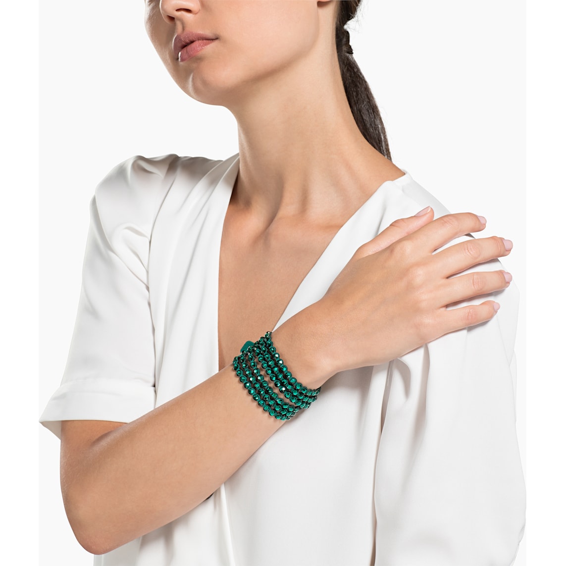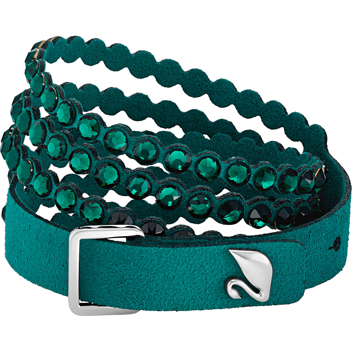 This must-have design sparkles brilliantly with green crystals on soft green Alcantara® fabric, with an adjustable closure featuring a Swarovski swan-shaped button. Wear it solo, as a choker, or stacked with other Swarovski Power Collection bracelets to create your own arm party.