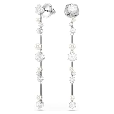 Constella drop earrings Crystal pearl, Round cuts, White, Rhodium plated