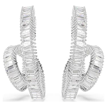 Matrix hoop earrings Baguette cut, Ribbon, White, Rhodium plated