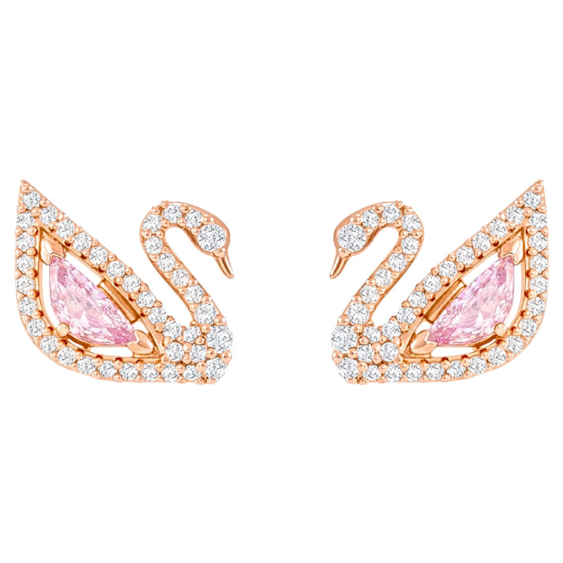Dazzling Swan Pierced Earrings, Multi-colored, Rose-gold tone plated