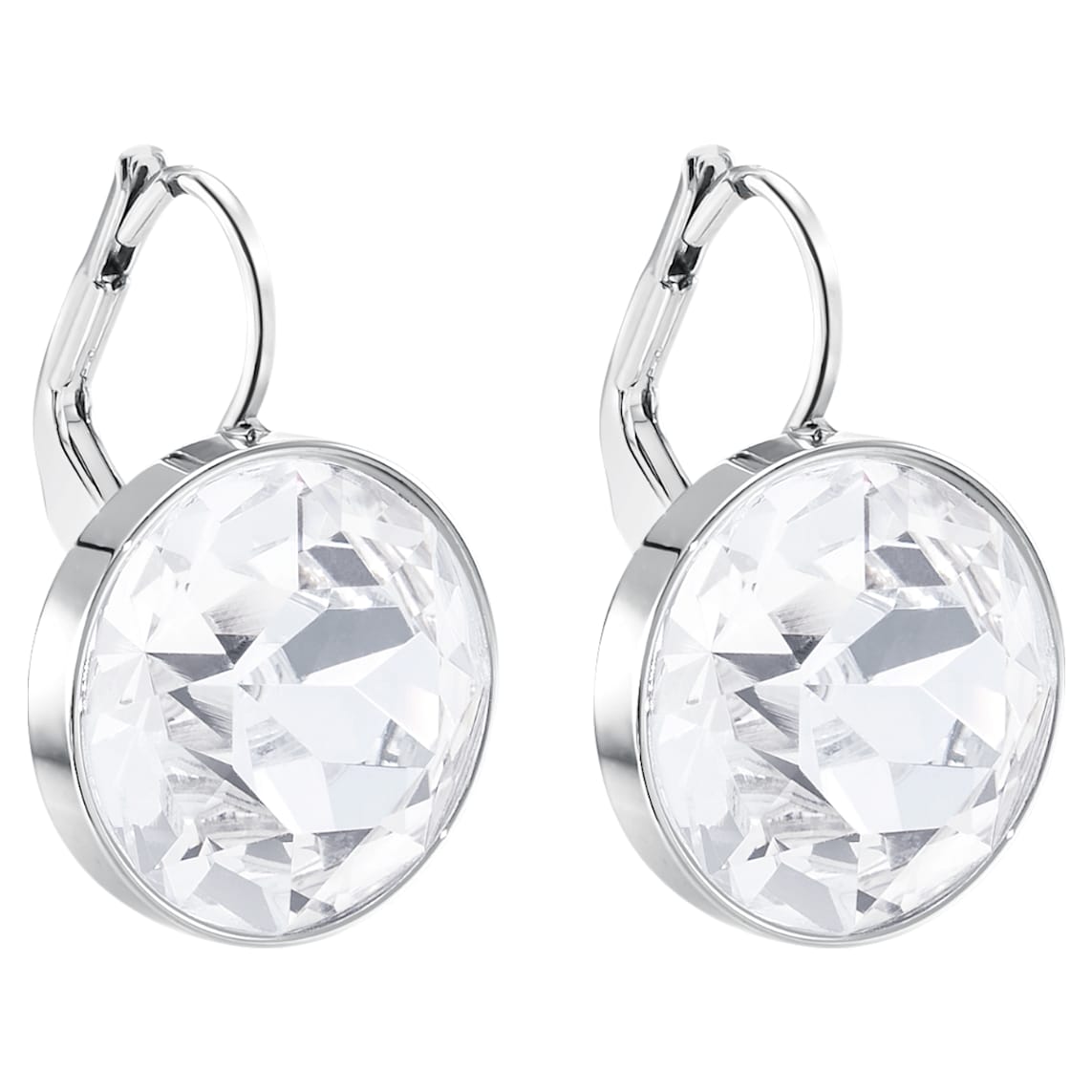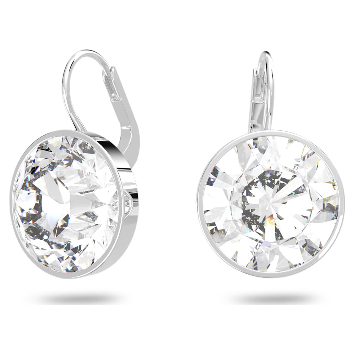 This is a pair of very special earrings that can be worn on any occasion. Be it a casual glamorous look or a cool chic one, this set of rhodium-plated pierced earrings with bezel-set, faceted clear crystal are ideal. The earrings come as a pair. Diameter of the crystal: 1.4 cm.