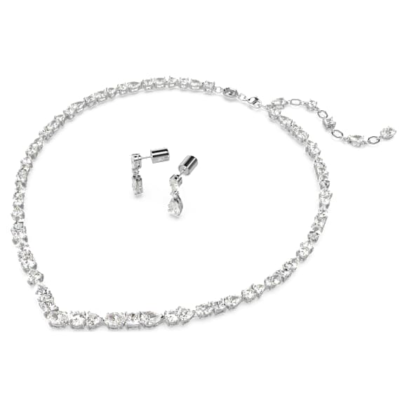 Cette parure de bijoux de la famille Mesmera incarne à merveille le luxe, le raffinement et le savoir-faire unique de Swarovski. Ce collier est composé d’une rangée captivante de Swarovski Zirconia de différentes tailles, montés sur une structure en métal rhodié. Ultime touche de luxe et de raffinement, l’extension est quant à elle dotée d’un fermoir mousqueton et habillée d’une multitude de Swarovski Zirconia. Ces pendants d’oreilles en métal s’habillent de lumière grâce à un ensemble étincelant de cristaux de taille poire. Offrez cette parure en cadeau à quelqu’un que vous aimez pour dynamiser instantanément son style.