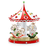 Instillez un peu de gaieté festive dans votre décor avec ce carrousel rotatif qui brille sous tous les angles lorsqu’on le fait tourner à la main. Éveillant des souvenirs de marchés de Noël débordant de lumières scintillantes et de musique joyeuse, ce magnifique objet compte plus de 2 200 facettes en cristal multicolore et quatre chevaux à bascule en cristal pleine coupe. La plateforme en métal de ton doré chaleureux et les petits cristaux qui ornent le toit rouge et blanc renforcent le sentiment de joie qui émane du carrousel. Une fabuleuse pièce maîtresse, parfaite à offrir en cadeau. Objet de décoration. Ceci n’est pas un jouet. Ne convient pas aux enfants de moins de 15 ans.