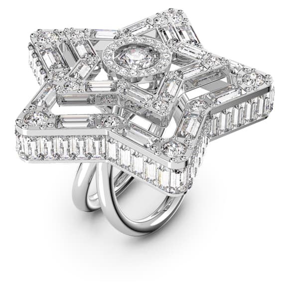 Stella koktélgyűrű Vegyes metszés, Csillag, Fehér, Ródium bevonattal