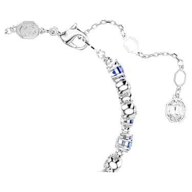 Ez az élénk Constella karkötő ragyogással öleli körül a csuklót. A ródiumbevonatú ékszeren különböző méretű és árnyalatú átlátszó kristályok és kék Swarovski Zirconia kristályok ragyognak körben, prong és bezel foglalatban elhelyezve. A delfin zárral ellátott, csillogó karkötő kifinomult kiegészítője lehet bármilyen öltözéknek, és a hozzáillő nyaklánccal együtt is viselhető.