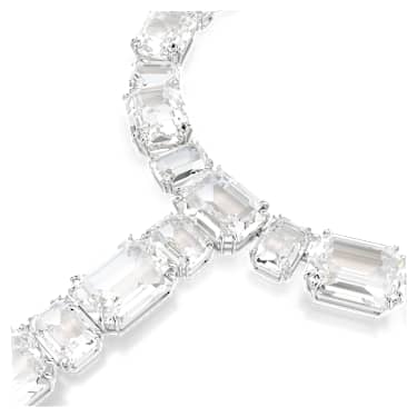 Irradia meraviglia con questa collana a T della famiglia Millenia. Il design placcato rodio presenta una fila di cristalli Cry all-around, di varie forme e dimensioni, e con un lungo filo sul davanti. È un modo superbo per amplificare la luce e la gioia nel tuo stile. Abbina questa collana ad orecchini Millenia coordinati per completare un look di grande effetto.