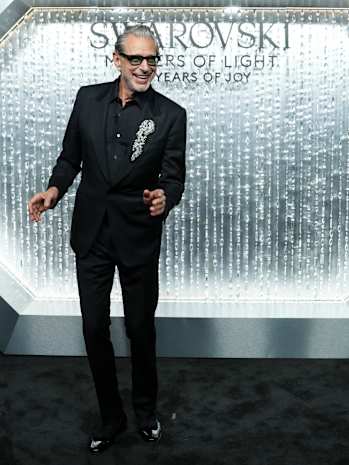Bringing his irresistible charisma to the red carpet, Jeff Goldblum dazzled as he danced in an all-black suit and joyfully extravagant crystallized brooch inspired by the feathers of the Swarovski Swan.