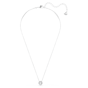 シンプルでありながら細部まで美しいデザインが人目を引くクラシックなペンダント。ラウンドシェイプのホワイト・クリスタルをきらめくホワイトのパヴェのラインで囲みました。おそろいのチェーン付き。普段の装いにふさわしく、心のこもったギフトにも最適です。