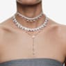 洗練されたブレスレットで純粋なエレガンスを表現しましょう。スライド式ボールクロージャーで簡単にサイズを調節できるロジウム・プレーティングのデザインで、ラウンドカットのクリアのSwarovskiジルコニアをセットした2列のカップチェーンにSwarovskiクリスタル・パールのダングルをあしらい、贅沢感とインパクトに満ちたルックに仕上げました。お揃いのチョーカーと組み合わせれば、ご自分だけの表情豊かなスタイリングをお楽しみいただけます。