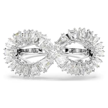 인피니티 형태의 이 링에서는 타임리스한 스타일이 생생하게 표현됩니다. 이 로듐 플래팅 주얼리는 나선형 디자인이 특징이며, 놀라운 디테일을 위해 전문적으로 세팅된 클리어 Swarovski 지르코니아로 밝게 장식됩니다. 상징적이면서도 아름다운 매혹적인 링입니다.