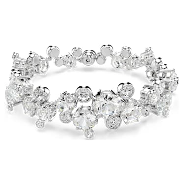 Geniet van het meesterwerk van licht in deze fonkelende Constella-armband, die is gemaakt met een rhodium toplaag en een overvloed aan stralende heldere kristallen in klauw- en lunettezettingen. De magneetsluiting maakt dit een gemakkelijk te dragen sieraad, terwijl de extender u in staat stelt om de pasvorm snel aan te passen. Draag deze armband met de bijpassende Constella-ketting voor extra glans.