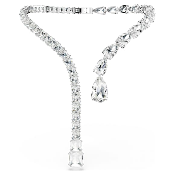 Ihre eleganten Rundungen und der Allaround-Glanz machen diese Matrix Halskette zu einem Statement-Style der Superlative. Das rhodinierte Design ist mit vielen klaren Kristallen in Tropfen- und Square-Schliffen verziert. Die verschiedenen Kristallgrößen verleihen der Kreation unerwartet voluminöse Dimensionen. Wählen Sie dieses Schmuckstück, wenn Sie sich sofort prachtvollen Glanz wünschen.