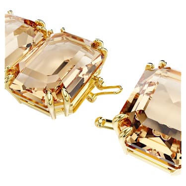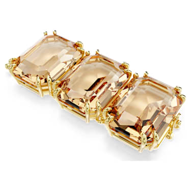 Ta przedłużka, zaprojektowana do naszyjnika Millenia, zapewniając wygodę i styl, ozdobiona jest trzema kryształami w szlifie ośmiokątnym w kolorze karmelowym i wykończona powłoką metaliczną w kolorze złota.