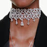 Esta dramática gargantilha Mesmera foi criada para um estilo de noite icónico. O design apelativo é feito com um conjunto de cristais numa surpreendente mistura de lapidações e tamanhos e, para um luxo extra, o alongamento integrado é feito com uma dispersão de pedras. Uma prenda marcante para alguém que gosta de se destacar.