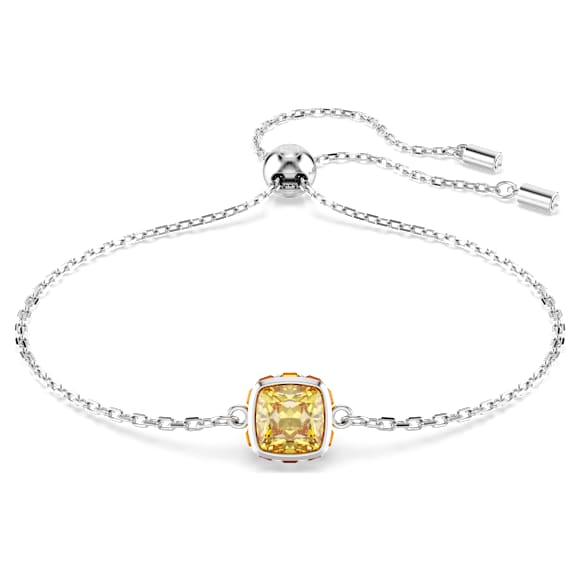 Infused with meaning, this bracelet is inspired by the birthstone of November. Crafted with a delicate chain, the rhodium plated jewellery features a square-cut crystal in a topaz-yellow hue, said to represent clarity and optimism. Perfect for a magical birthday gift or to celebrate a date that is significant to you.