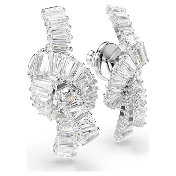 Kopmaz bir bağı simgeleyen bu Matrix küpeler, benzersiz bir örgü stiliyle tasarlandı. Kurdele şeklini alan her bir bükülmüş motif, rodyum kaplama olup tırnaklı yerleştirme baget kesim Swarovski Zirkonya ile sofistike bir şekilde süslenmiştir. Sofistike bir tarz gerektiğinde bu küpelere uzanın ve uyumlu bir görünüm için diğer Matrix takı parçalarıyla eşleştirin.
