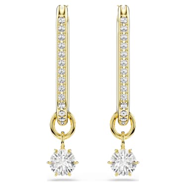 Bu altın rengi kaplama küpelerin göz alıcı yoğunluğuyla her güne ışıltı katın. Her bir uzun halka, altında zarifçe sallanan tırnaklı yerleştirme Swarovski Zirkonyayla ışıltılı pavé ile süslendi. Constella ailesinin yıldızlardan ilham alan zarafetinden esinlenen, klasik halka tarzına harika bir alternatif.