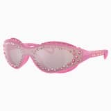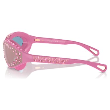 戴上這款 Imber 風格太陽眼鏡,散發活力四射的風格。運動風設計是以游泳鏡的時尚造型為本,採用創新的粉色塑膠鏡框、鏡腳和紫羅蘭色鏡面鏡片,兩側均飾有各種粉色Swarovski水晶。橡膠鏡腳尖和眼墊等細節讓人驚艷。以趣緻而奢華的方式讓造型更煥發活力。