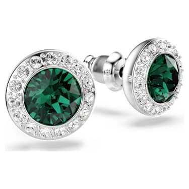 用這些閃亮的耳釘耳環來為服裝加分。這對耳環塗上一層精巧的密鑲裝飾和俐落的鍍白 K,並配有充滿活力的綠色圓形切割水晶。可與 Una Angelic 系列的其他單品搭配。