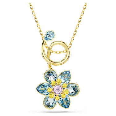佩戴這款向大自然致敬的水晶作品,讓您的造型更添亮麗。中央圖案懸掛在精緻鏈條上,採用花朵造型,搭配閃耀的藍色花瓣和鍍金色調枝幹。這枚 Idyllia 鏈墜融合多種形狀和色調,洋溢著歡樂氣息,讓您整天心情愉悅。
